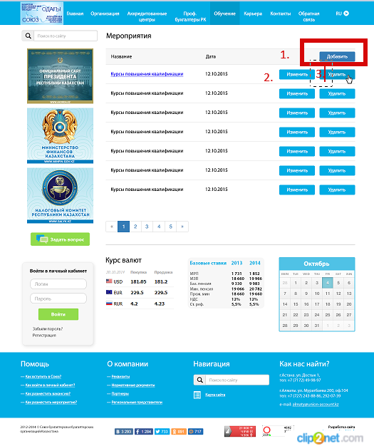 и на кнопку «Добавить» (1) (рисунок 2). На этой же странице Вы можете увидеть кнопки изменения (2) и удаления(3) информации о мероприятии, а также название мероприятия и дату проведения.